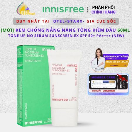 Innisfree [Mới] Kem Chống Nắng Nâng Tông Kiềm Dầu 60ml INNISFREE Tone Up No Sebum Sunscreen EX SPF 50+ PA++++ (New) [Otel-StarX- Chính Hãng]