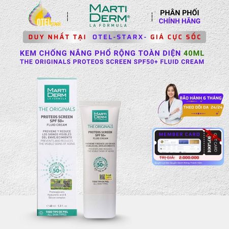 Kem Chống Nắng Phổ Rộng Toàn Diện Ngừa Lão Hóa, Phòng Chống Nám Quay Lại MartiDerm The Originals Proteos Screen SPF50+ Fluid Cream 40ml hiện đã có mặt tại Otel-Starx.