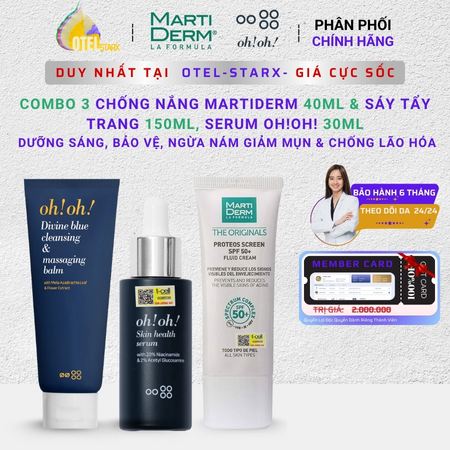 [Combo] Chống Nắng Phổ Rộng Martiderm 40ml, Sáp Tẩy Trang oh!oh! 150ml & Skin Health Serum oh!oh! 30ml Dưỡng Sáng, Ngừa Nám, Bảo Vệ, Giảm Mụn, Chống Lão Hóa đã có tại Otel-Starx.