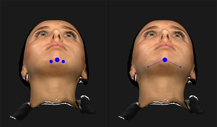 Nếu có bất đối xứng vùng cằm, cần điều chỉnh liều lượng phù hợp giữa hai bên