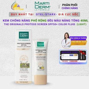 Martiderm Kem Chống Nắng Phổ Rộng Đều Màu Nâng Tông 40ml The Originals Proteos Screen SPF50+ Color Fluid Cream (Light) Ngừa Thâm Sạm Nám. [Otel-Starx- Chính Hãng]